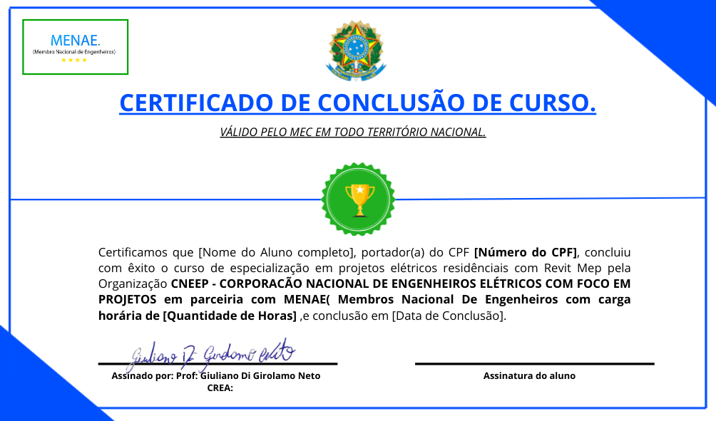 Com o Curso de Projetos Elétricos Residenciais de Alto Padrão, aprimore suas habilidades em projetos elétricos residenciais utilizando o Autodesk Revit BIM. Aprenda desde o básico até técnicas avançadas, cobrindo aspectos essenciais como importação de DWG, modelagem arquitetônica 3D para projetos elétricos, lógica e dimensionamento de circuitos com identificação, geração de quadros de carga e desenvolvimento de diagramas unifilares. Adquira o curso agora e destaque-se no mercado oferecendo soluções de projeto elétrico de alta qualidade e eficiência.